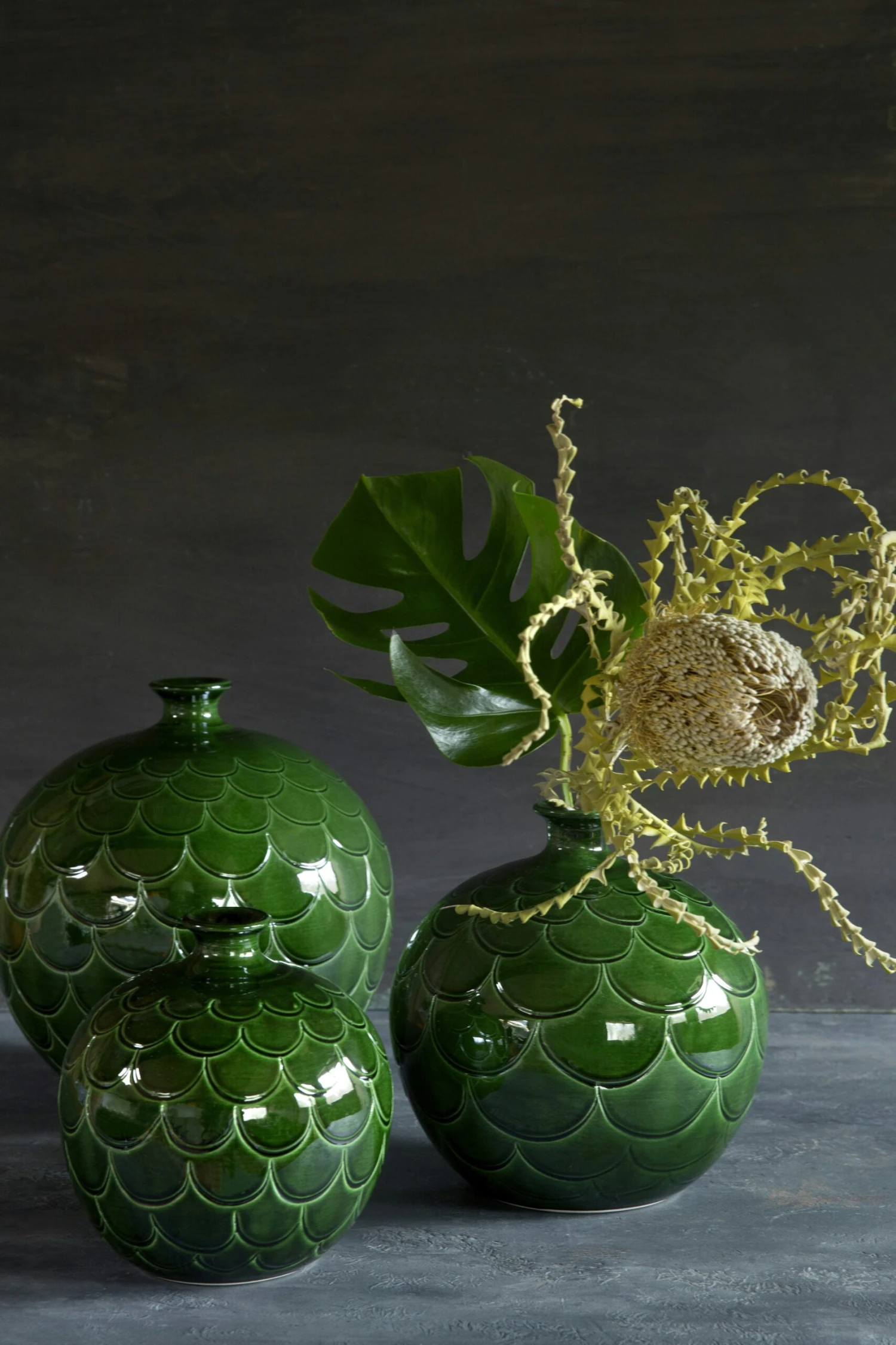 Wenn du beim Anblick der Misty Vase Liebe auf den ersten Blick verspürst, dann bist du damit auf keinen Fall alleine. Die Misty-Serie ist Bergs Potters jüngstes Mitglied der Familie der glasierten Vasen und lässt niemanden kalt. Die smaragdgrüne Glasur in Kombination mit der schönen Struktur ist unglaublich schön und zieht alle Aufmerksamkeit auf sich. Die Serie hat vier verschiedene Formen und Größen. Die runden Vasen werden in drei verschiedenen Größen angeboten, während die kegelförmige Vase nur in einer Größe erhältlich ist.