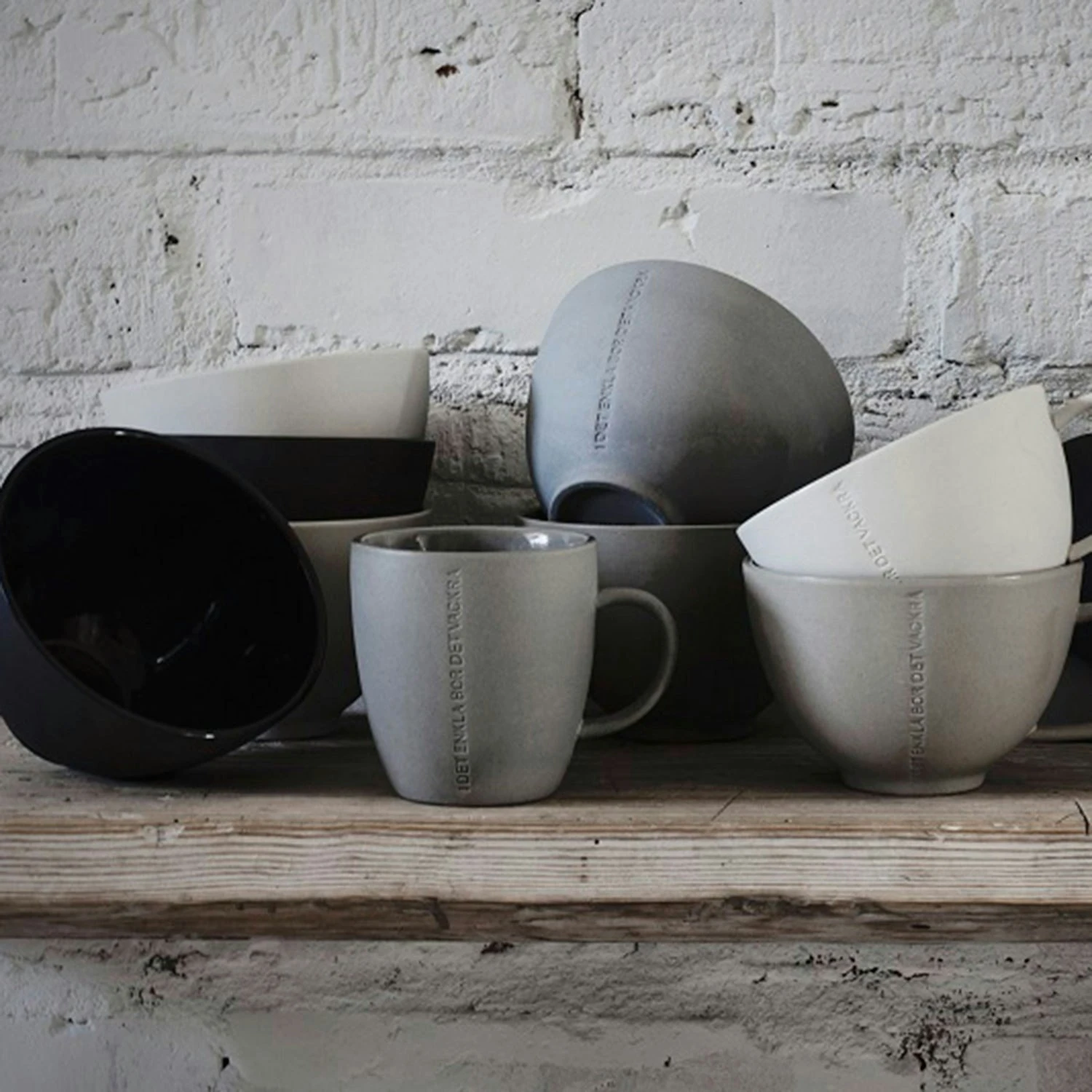 Eine Keramik-Tasse von Ernst Kirchsteiger mit dem schwedischen Zitat „I det enkla bor det vackra“ was so viel wie „In der Einfachheit liegt die Schönheit“ bedeutet. Die dezenten Farben und die matte Oberfläche sind schlicht doch schön. Starte deinen Morgen mit einer Tasse Kaffee die dich glücklich macht.