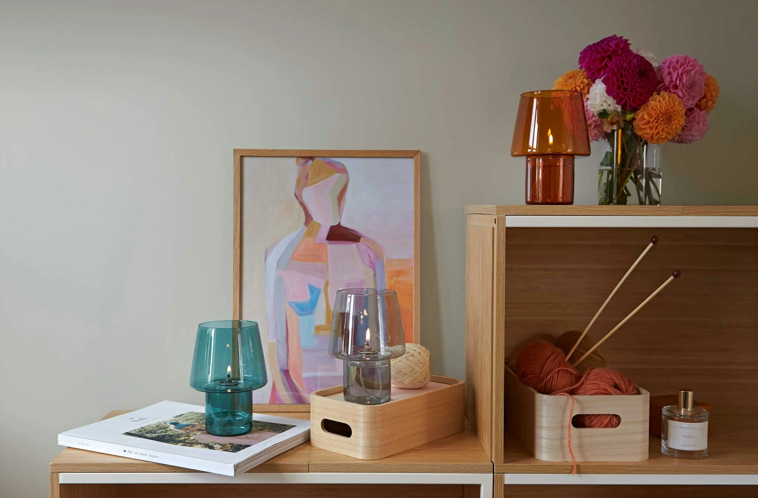 – Diese Öllampe ist in verschiedenen Farben erhältlich.